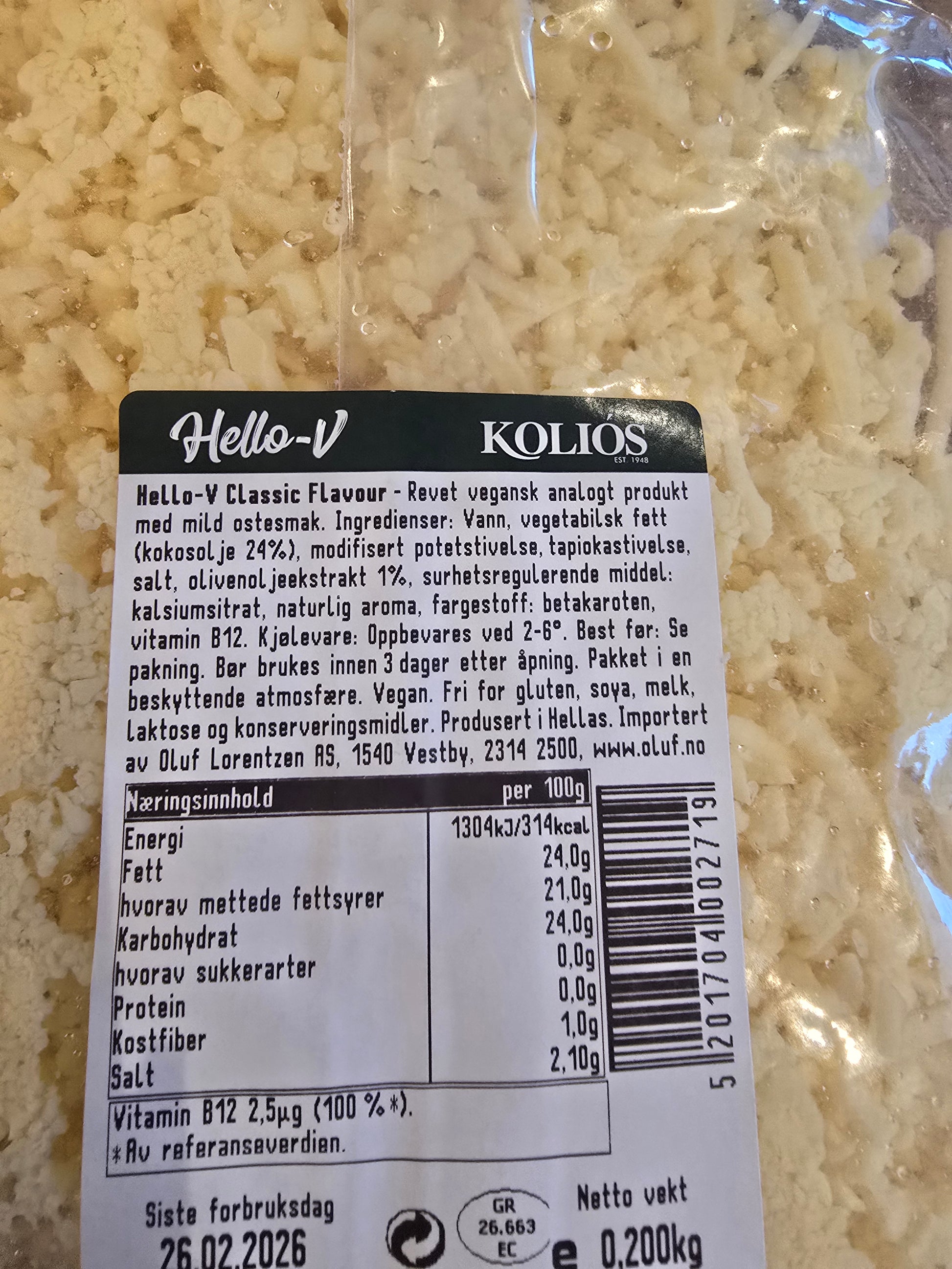 Vegansk pizzaost, ypperlig for de med melke allergi eller intoleranse.